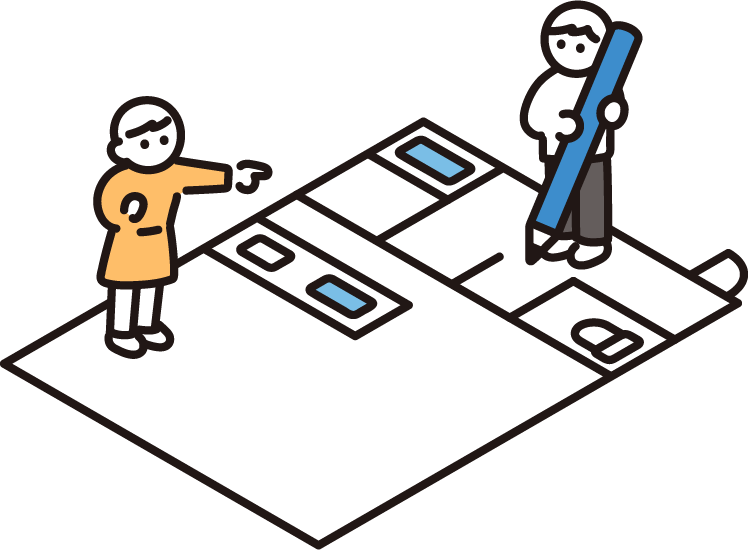 - 現地調査の結果に基づき、具体的なプランを考え、設計図書・見積書を作成する